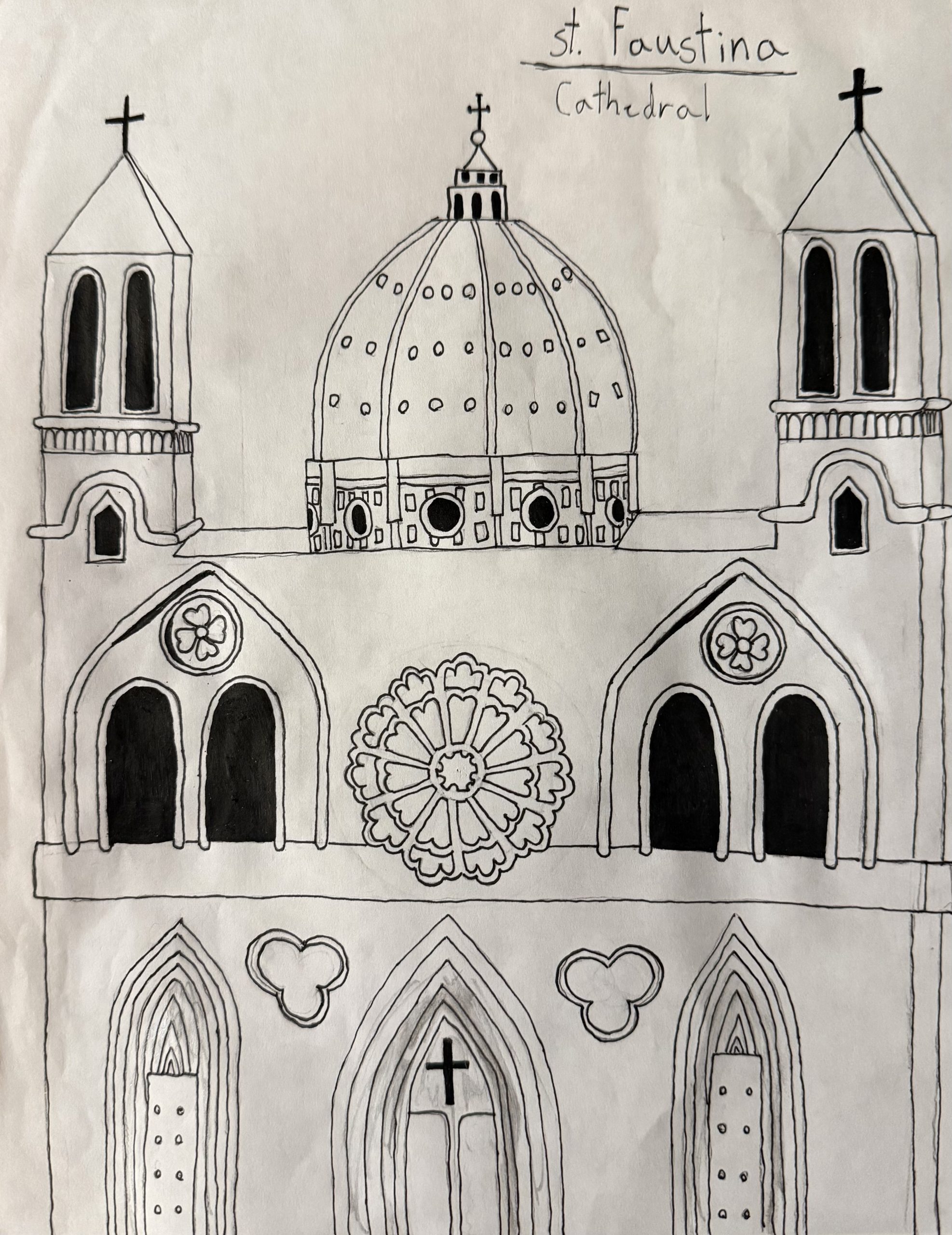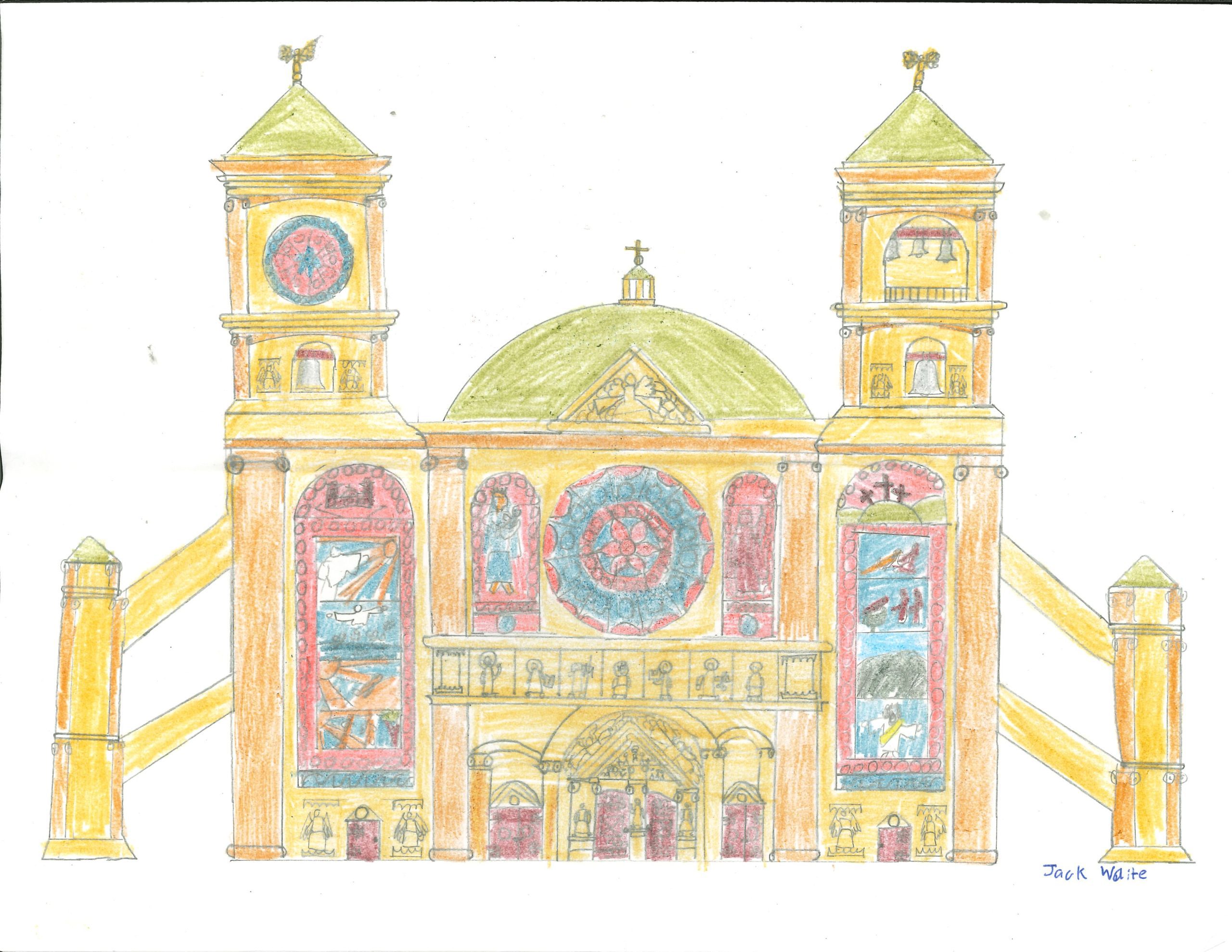 Draw your own cathedral! It’s your turn to draw the facade, or front, of an imaginary cathedral!